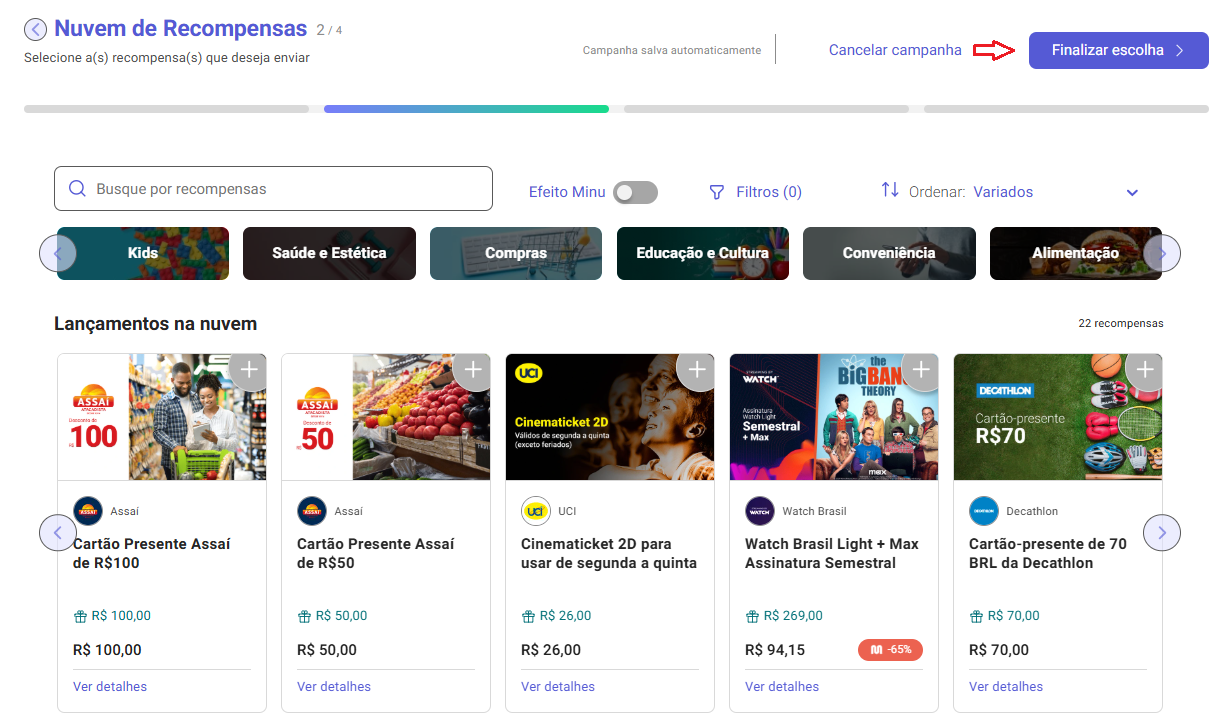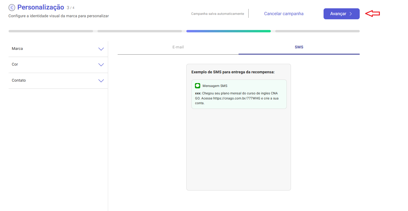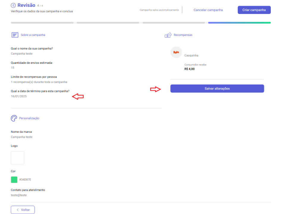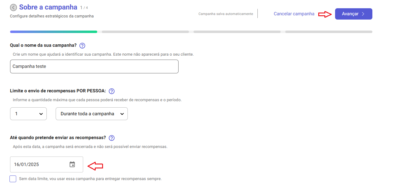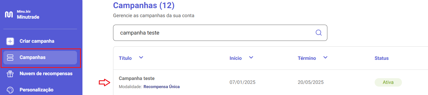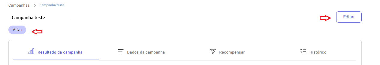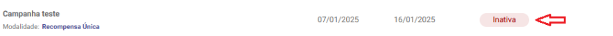 - Quando a data de término configurada for alcançada, o status da campanha na plataforma será automaticamente alterado para Inativa.