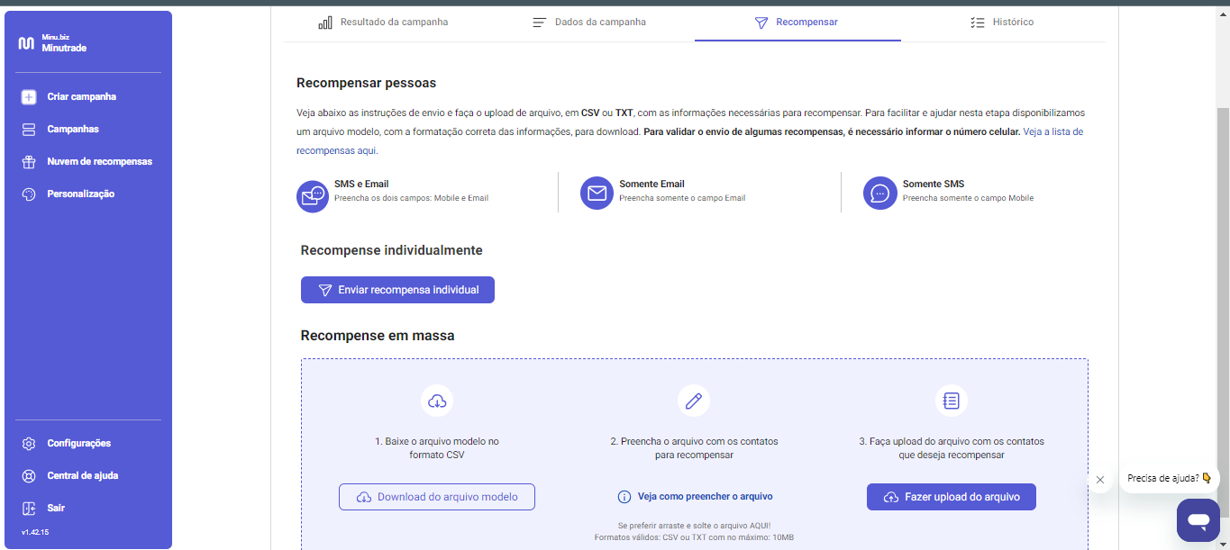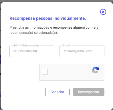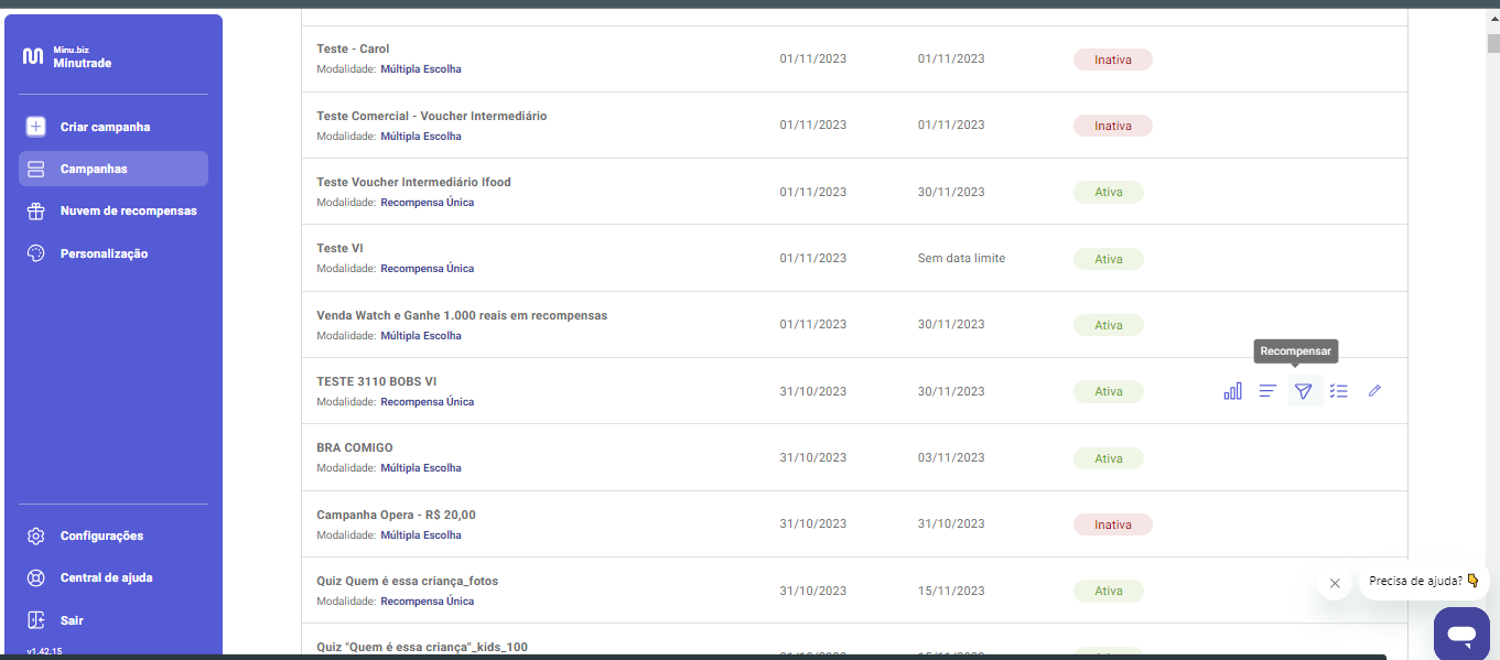 Para recompensar os clientes que conclui a mecânica da campanha, basta acessar ela e clicar no botão recompensar na parte direita.